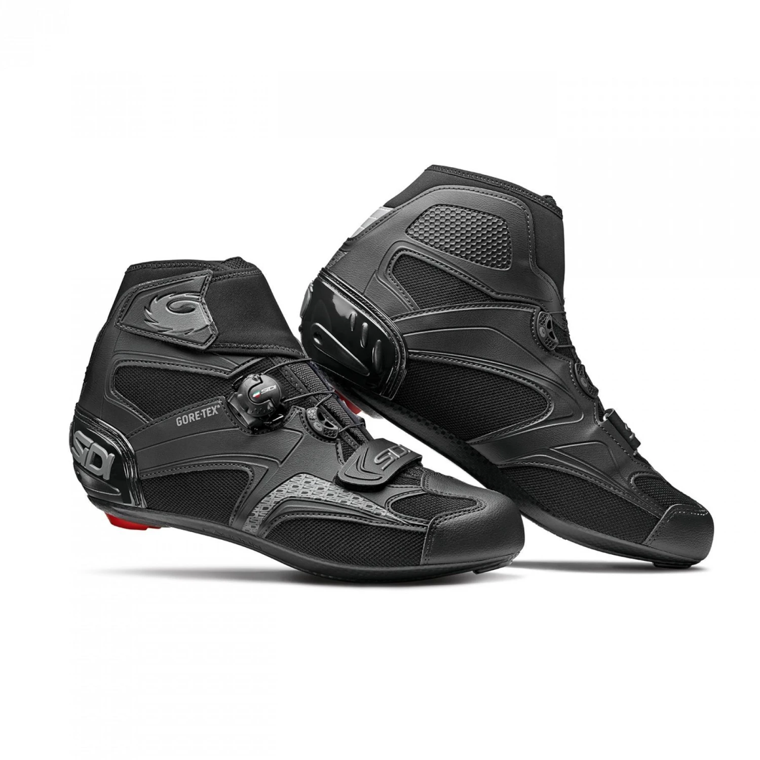 Le TECHNO-3 SYSTEM de la SIDI se compose de cadrans qui s’ajustent sur toute la longueur de la chaussure, en adaptant la tige à la forme du pied pour un ajustement personnalisé.